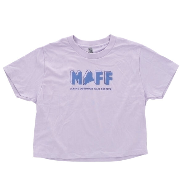 Comfort Colors® Women’s Heavyweight Boxy Tee Orchid cotton t-shirt. Orchid women’s short sleeve with Blue “MOFF” centered on chest, with Maine as the “O” and purple outline